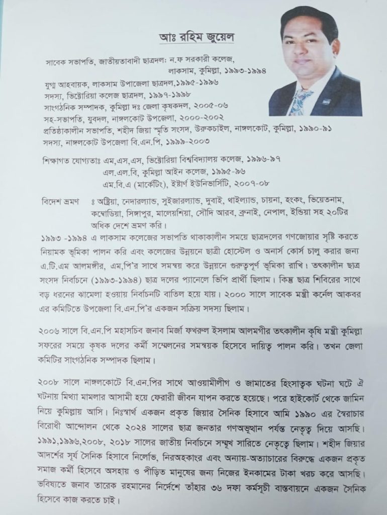 দীর্ঘ ১৮ বছর পর নাঙ্গলকোট উপজেলা বিএনপির কাউন্সিল, সাধারণ সম্পাদক পদে আলোচনায় আব্দুর রহিম জুয়েল