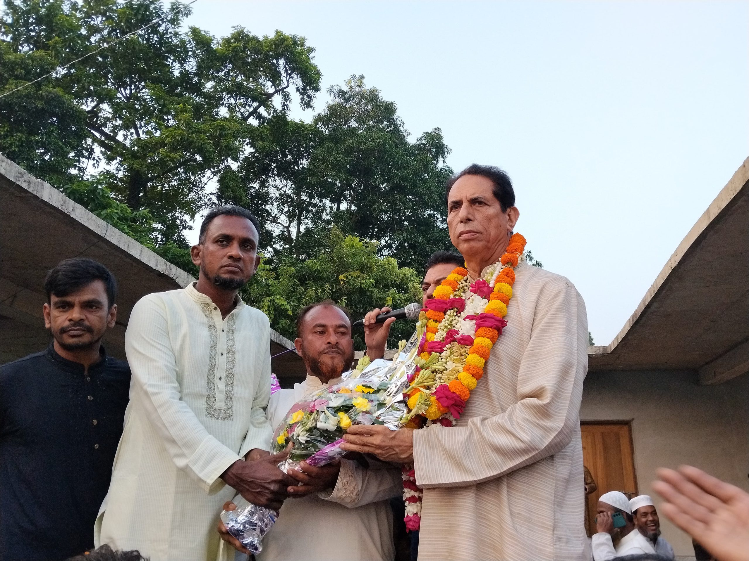 নাঙ্গলকোটে ধানের শীর্ষের প্রার্থীকে ফুল দিয়ে সংবর্ধনা