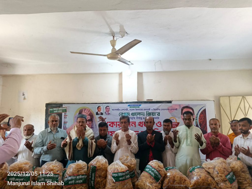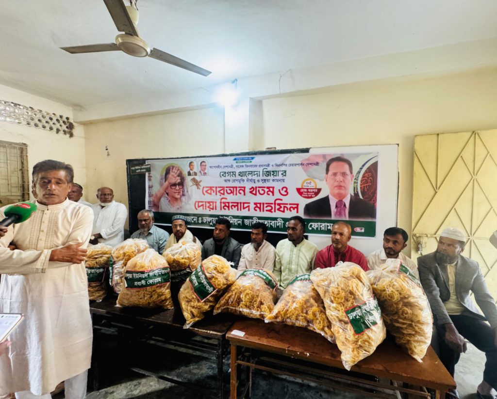 সাবেক প্রধানমন্ত্রী বেগম খালেদা জিয়ার রোগমুক্তি কামনায় ঢালুয়া ইউনিয়ন প্রবাসী ফোরামের উদ্যোগে ৪৫টি মসজিদে খাবার বিতরণ