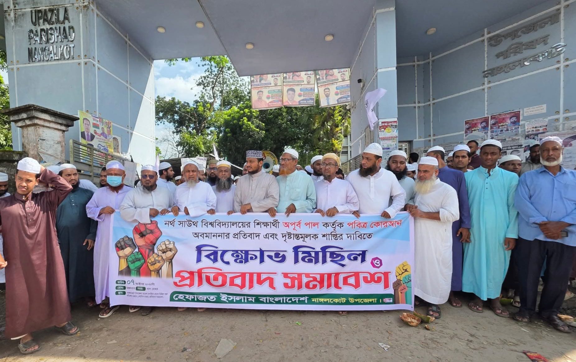 কুরআন অবমাননার প্রতিবাদে নাঙ্গলকোট হেফাজতে ইসলামের বিক্ষোভ মিছিল
